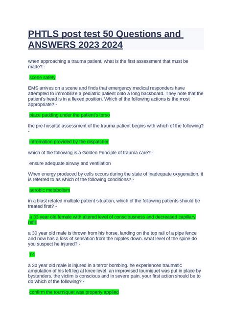 TDG - Download online PHTLS 7TH EDITION POST TEST Doc ManyBooks